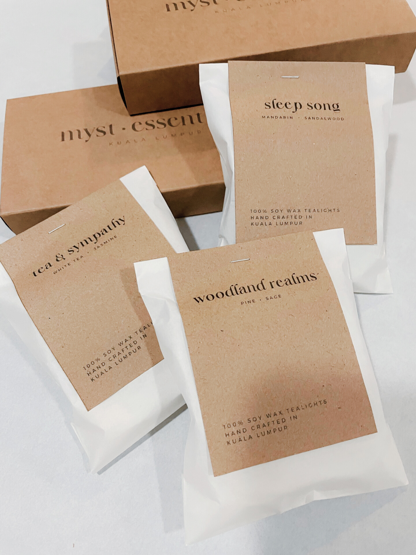 Our refill sachet includes four beautifully hand-poured scented tealights.